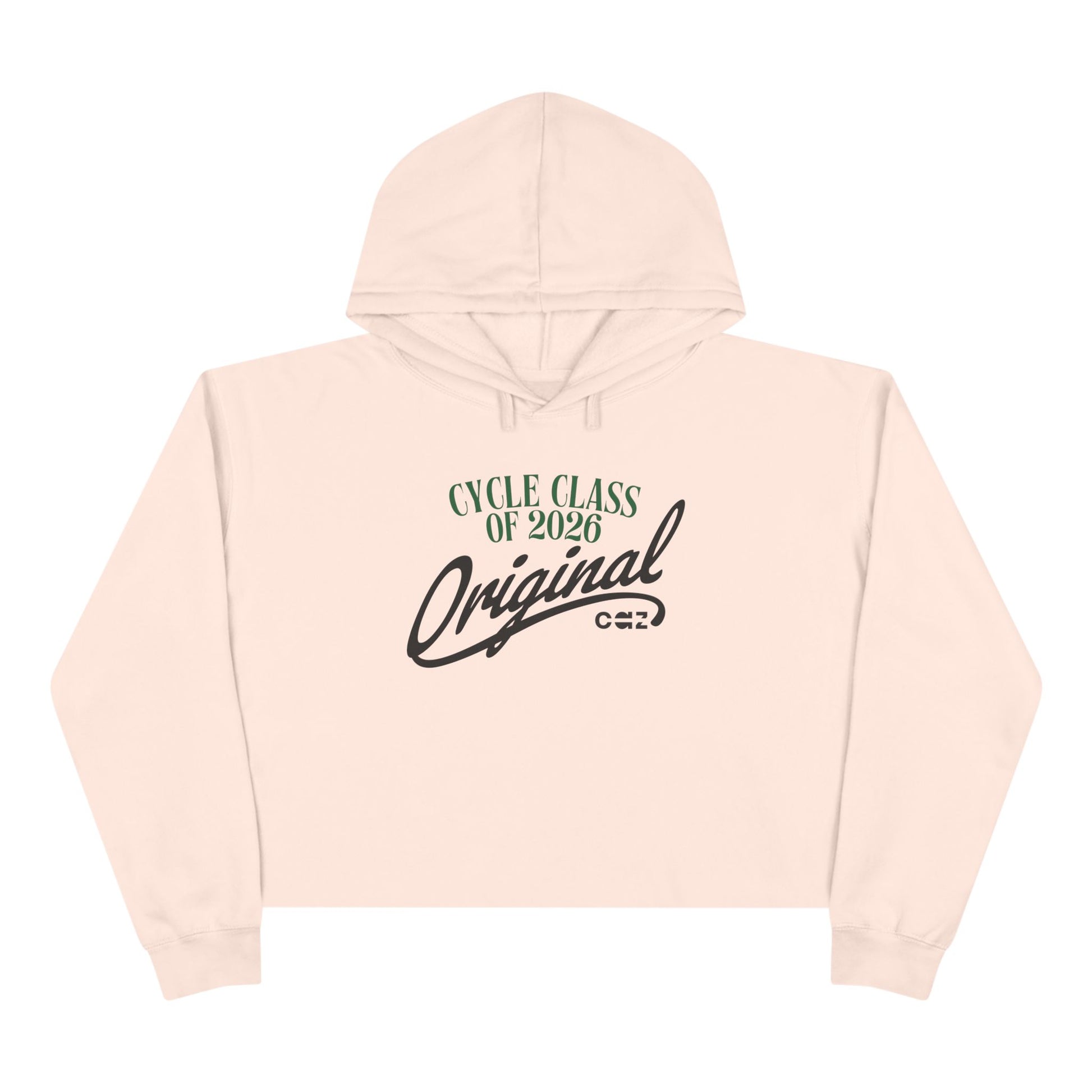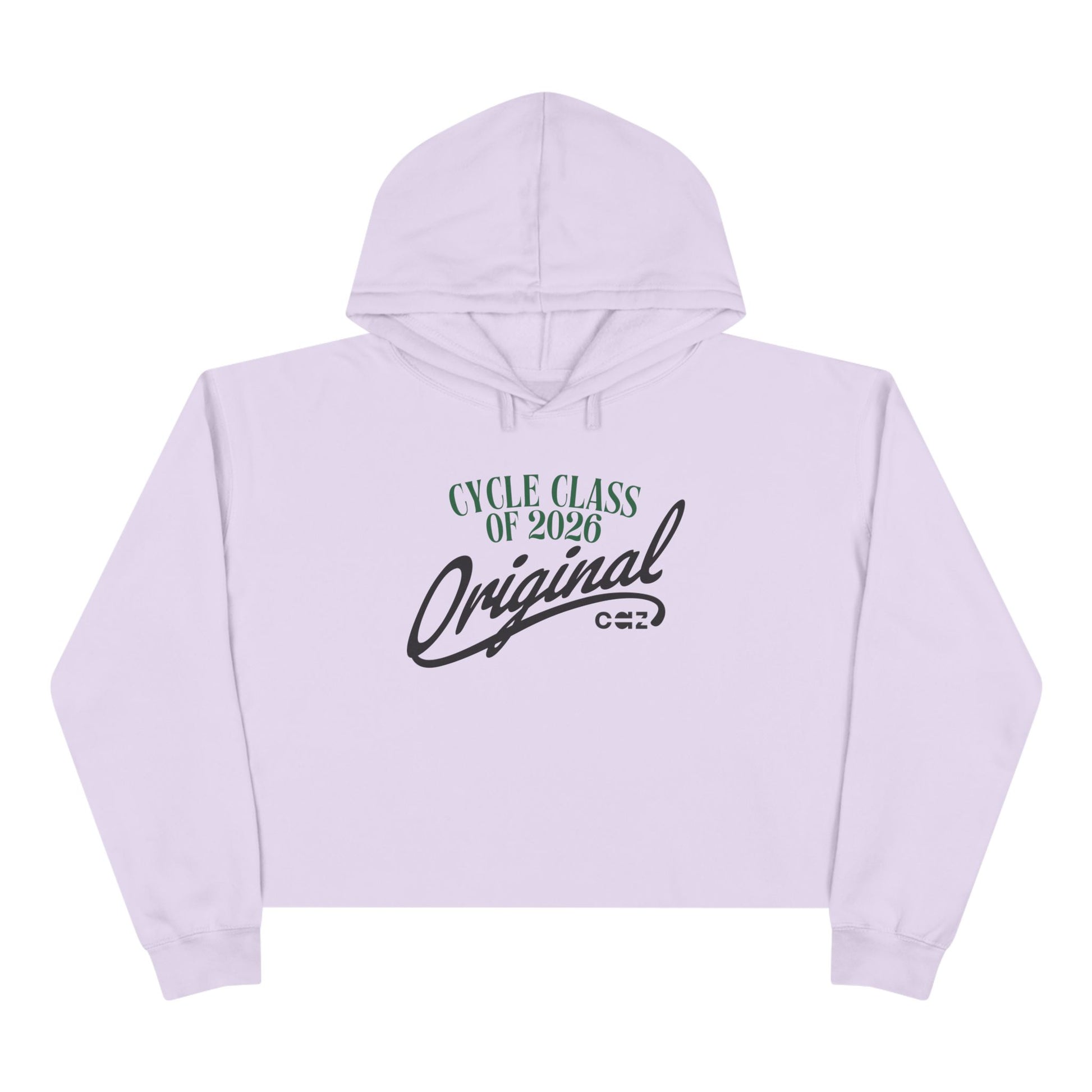 A cropped hoodie featuring the Cycle Class of 2026 graphic printed on the front.
